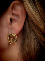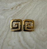 Geometric gold-tone design inspired by ancient motifs. These earrings are a perfect blend of history and modern style.