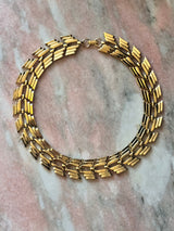 Sculptural articulated links with a rhythmic, almost armor-like pattern. Fluid yet structured, this piece reflects the confidence and bold elegance of late ’70s design—made to be worn alone or stacked with intention.